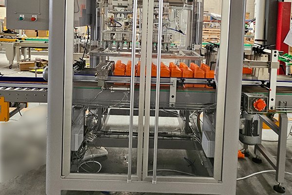 桶裝箱是裝箱案例中非常典型的的產(chǎn)品,針對(duì)不同桶的類型以及瓶口直徑的大小、效率的不同,裝箱機(jī)都會(huì)有所變化。該套機(jī)油桶裝箱包裝線是由高速熱熔膠開箱機(jī)、平移式裝箱機(jī)、熱熔膠封箱機(jī)、自動(dòng)稱重剔除機(jī)組合而成。