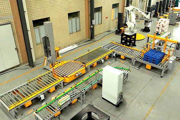 紙箱機器人碼垛在線纏繞包裝線是紙箱包裝領域非常常見的組合方式,該線體一般由碼垛機器人、自動供棧機、托盤輸送機以及在線纏繞包裝機組成,托盤在線纏繞機常見的有2種形式,一種是轉(zhuǎn)盤式一種是懸臂式,具體要根據(jù)貨物的狀態(tài)以及包裝效率來決定具體的選型。