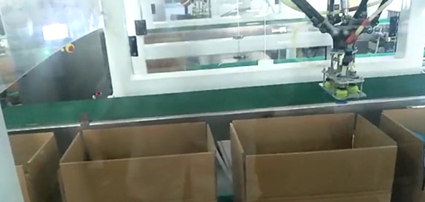 并聯(lián)機(jī)器人裝箱機(jī)也稱蜘蛛手裝箱機(jī),是一款速度比較快的裝箱機(jī),該機(jī)采用PLC控制,配合自動機(jī)械手(抓手樣式可選),實(shí)現(xiàn)對小物品的自動裝箱作業(yè),主要用于小袋產(chǎn)品或小盒產(chǎn)品的的裝箱,多用于食品、藥品、化工等包裝領(lǐng)域。