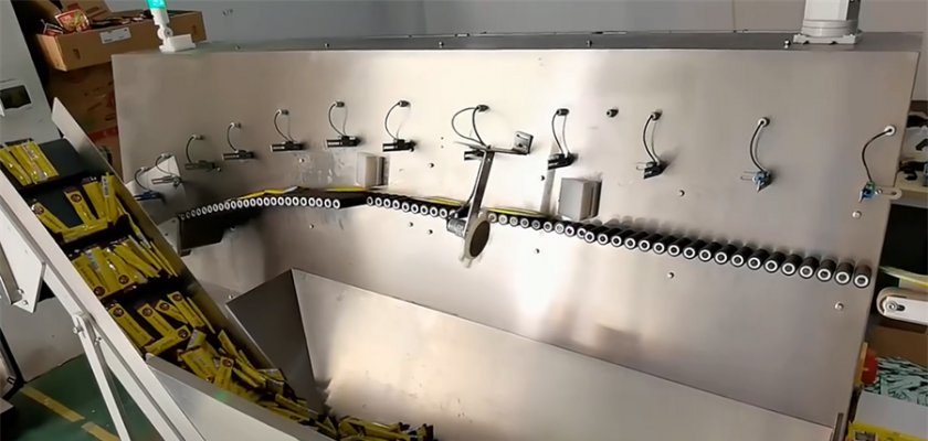 無序理料機也叫自動理袋機,可在生產(chǎn)中單獨使用,也可以與裝盒機對接,完成無規(guī)則的堆積物料從集中到分散再到順序擺放的整個整理過程。它是將無規(guī)則堆積物料倒入儲料倉后,料倉輸送帶動作,將物料輸送至低速滾輪上。無序理料機通過低、中、高速滾輪的運轉(zhuǎn),將物料逐一順序送出理袋機。 送出的物料根據(jù)包裝需要的形式或順序或堆疊進入裝盒機輸送當中完成下一工序的裝盒過程。
